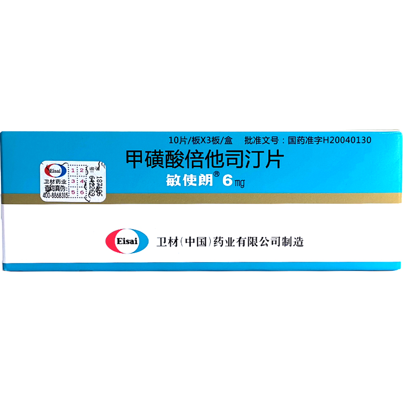 首页>全部商品>专科用药>呼吸科药>抗病毒药>敏使朗 甲磺酸倍他司汀片 6mg*30片/盒