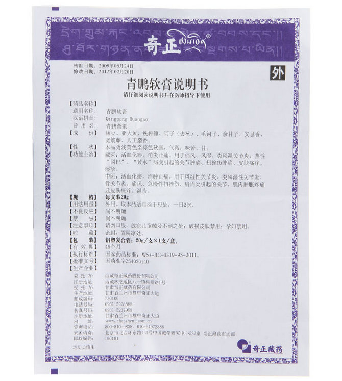 奇正青鹏软膏20g