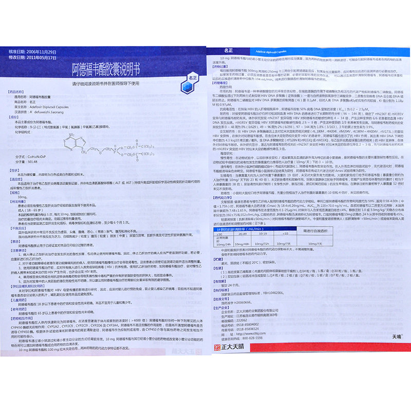 | 名正阿德福韦酯胶囊说明书 | ||