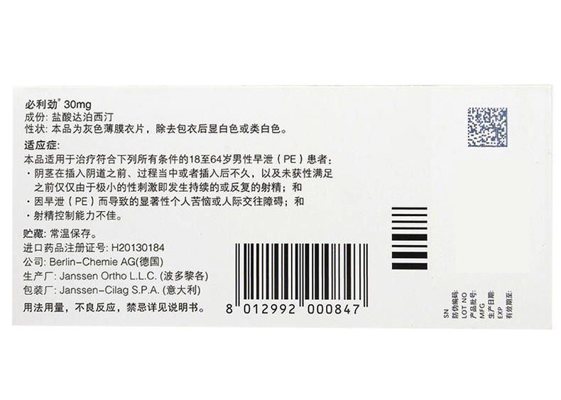 请仔细阅读必利劲(盐酸达泊西汀片)说明书,并在医师指导下使用。