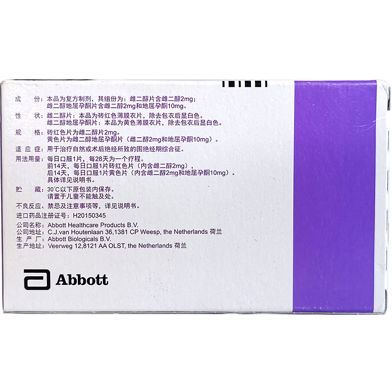 芬吗通 雌二醇片/雌二醇地屈孕酮片复合包装 2mg:2mg:10mg*28片/盒