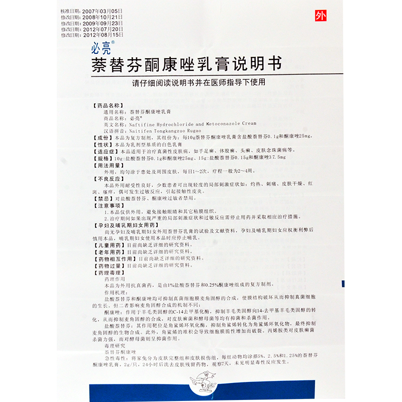 必亮萘替芬酮康唑乳膏