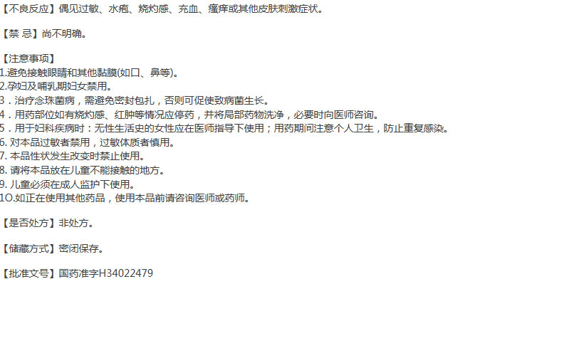 1.由皮真菌、酵母菌及其他真菌引起的皮肤、指(趾)甲感染,如:体股癣、手足癣、花斑癣、头癣、须癣、甲癣;皮肤、指(趾)甲念珠菌病;口角炎、外耳炎。由于本品对革兰阳性菌有抗菌作用,可用于此类细菌引起的继发性感染。