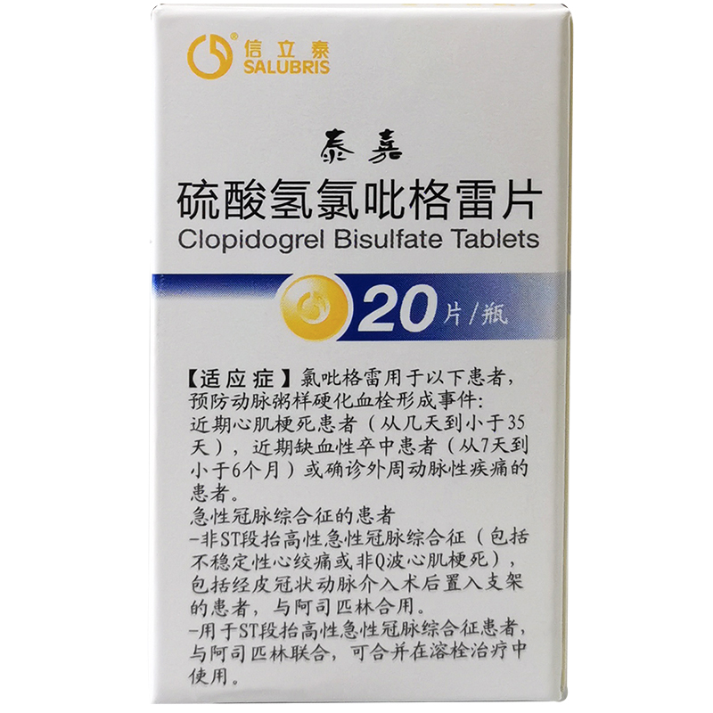 泰嘉硫酸氢氯吡格雷片20片