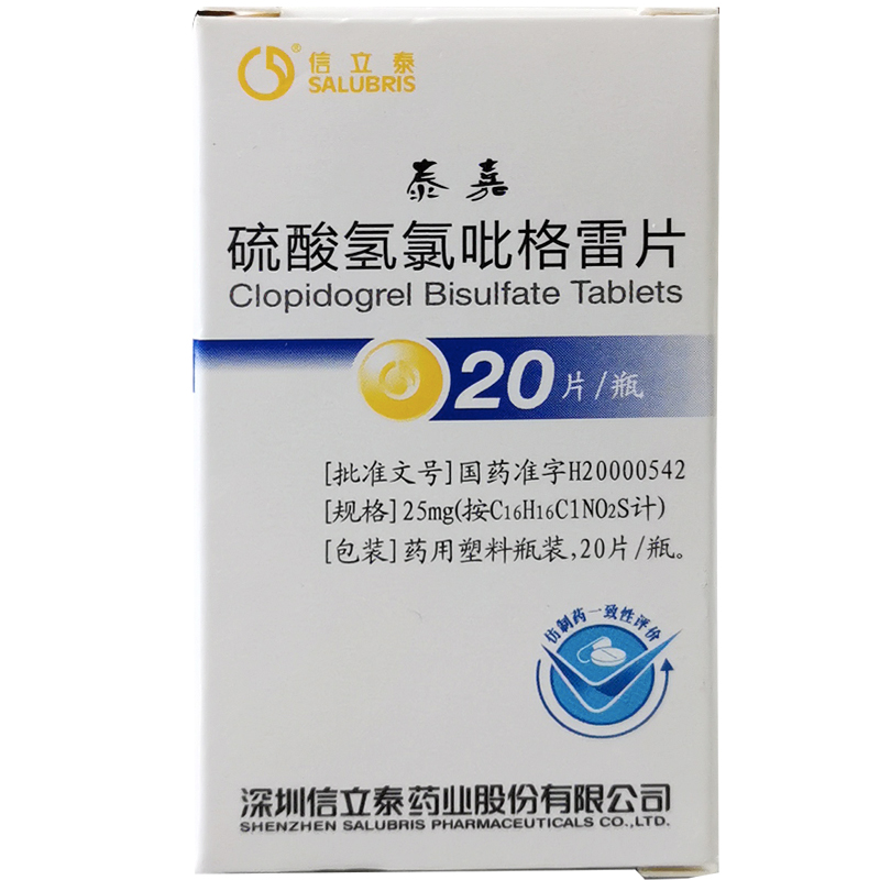 首页>全部商品>专科用药>心脑血管>心脑血管综合用药>泰嘉硫酸氢氯吡格雷片20片