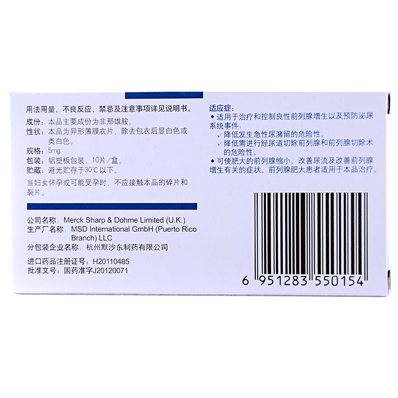 保列治非那雄胺片5mg*10片