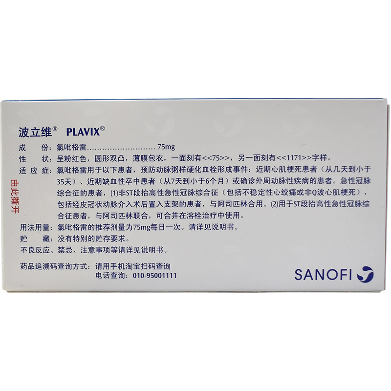 首页>全部商品>专科用药>心脑血管>心脑血管综合用药>波立维硫酸氢氯吡格雷片75mg*7片